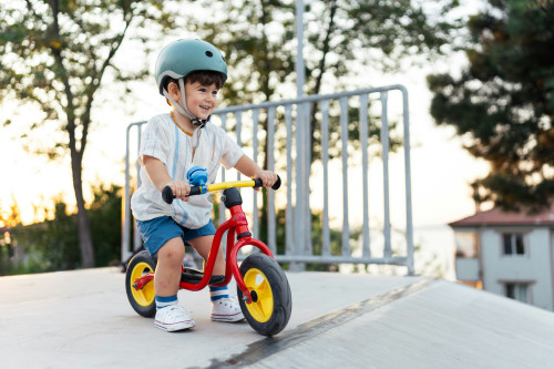 För de yngsta barnen, vanligtvis från 1–2 år, kan en trehjulig balanscykel vara en bra start. Den ger extra stabilitet och trygghet medan barnet lär sig att skjuta sig fram och styra.