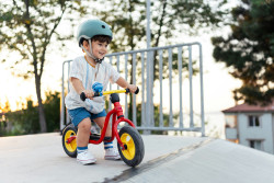 Ska barnet använda hjälm på balanscykel?